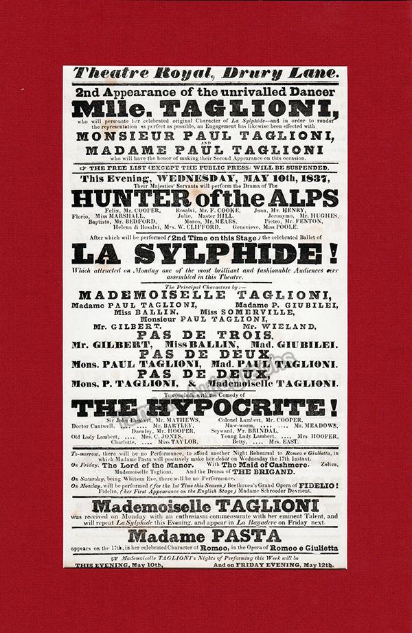 Marie Taglioni, Celebrated Ballerina – Playbills