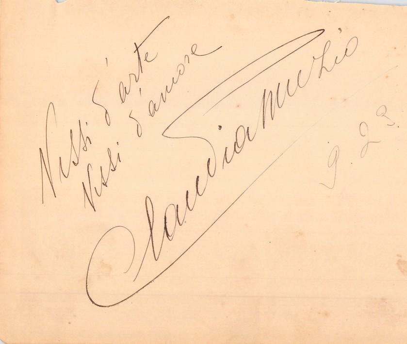An autograph book is simply a small notebook where someone collects autographs from others. Shown here is an autograph album page, signed by opera singer Claudia Muzio, with a short text quote from the opera "Tosca". They started to be used as early as the 16th century among students in...