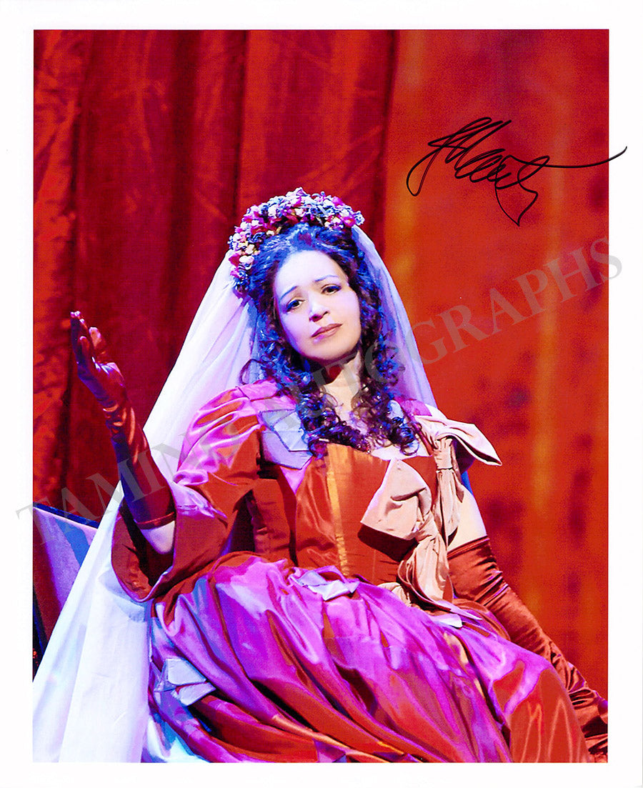 Nice color photograph signed by her, shown in performance. Size is 7.9 x 9.7 inches, in excellent condition.