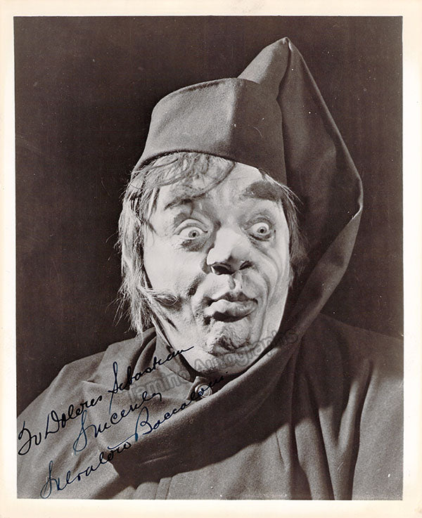Signed photograph, shown in role (possibly Dr. Bartolo), dated in 1941. Stamped on verso by World Wide Studio photographers,New York. Size is 8 x 9.5 inches, some creases but in generally good condition.