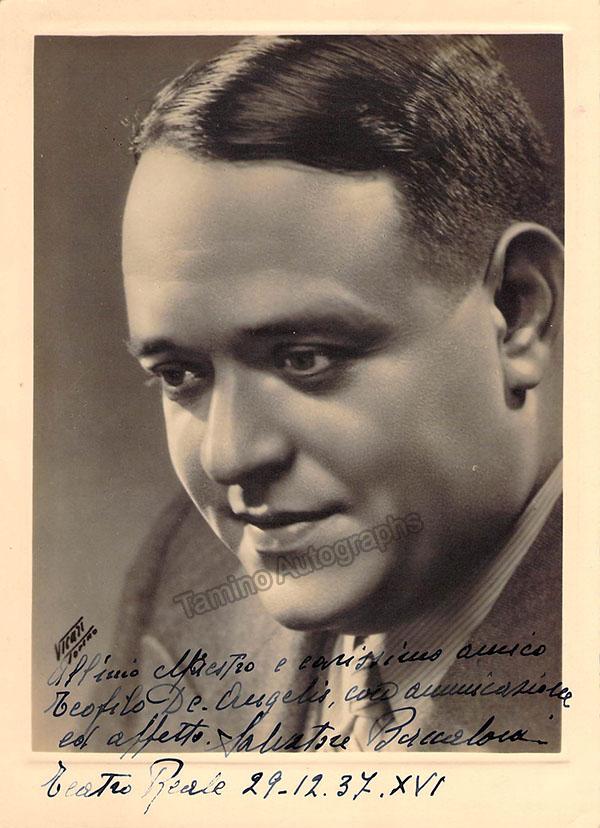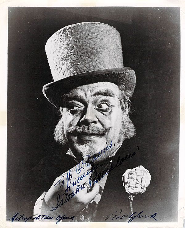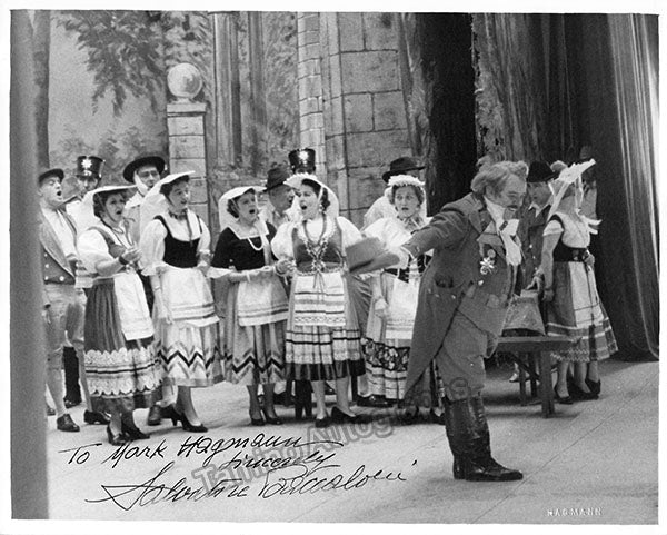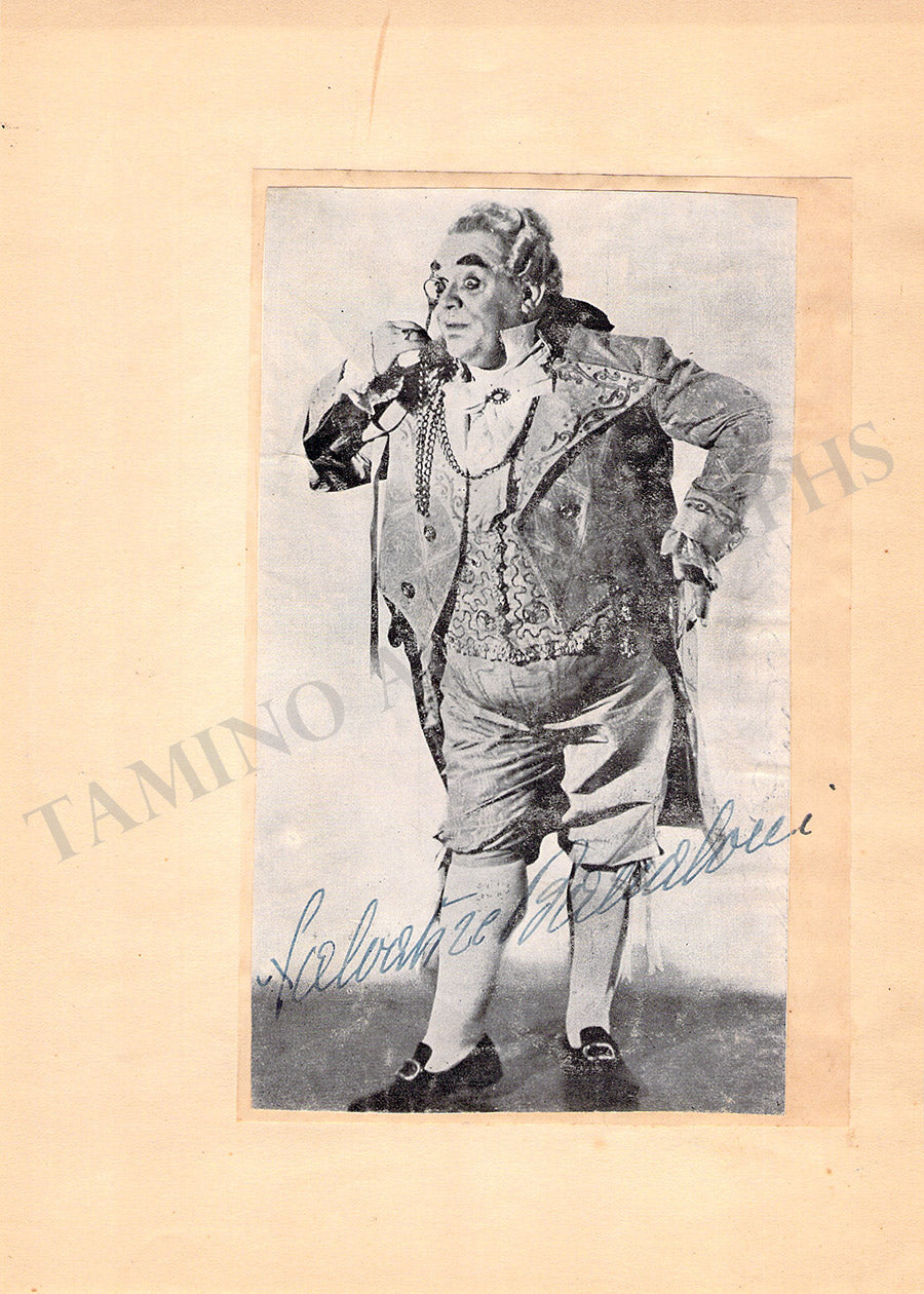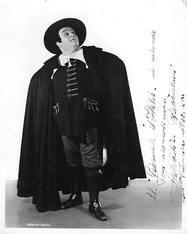 Signed photograph, shown in title role of Donizetti's Don Pasquale, inscribed at the Metropolitan Opera, New York, dated in 1945. Photo by Morton photo studio. Size is 7.25 x 9.25 inches, small crease on top right, otherwise in very good condition.