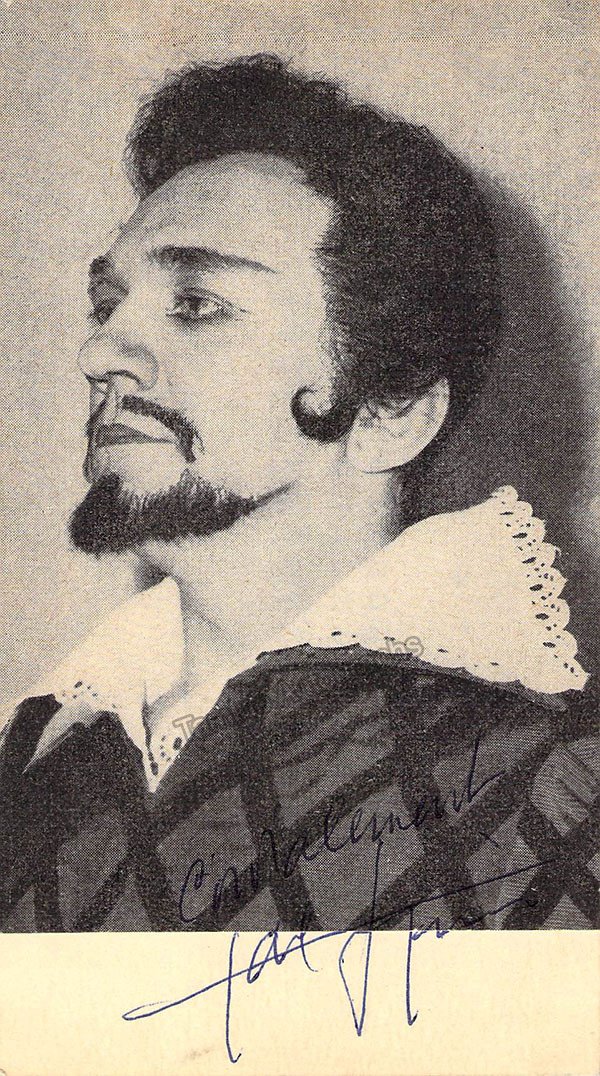French baritone (b. 1924), signed photo postcard, shown in the title role in Don Giovanni. Size is 3.25 x 5.75 inches