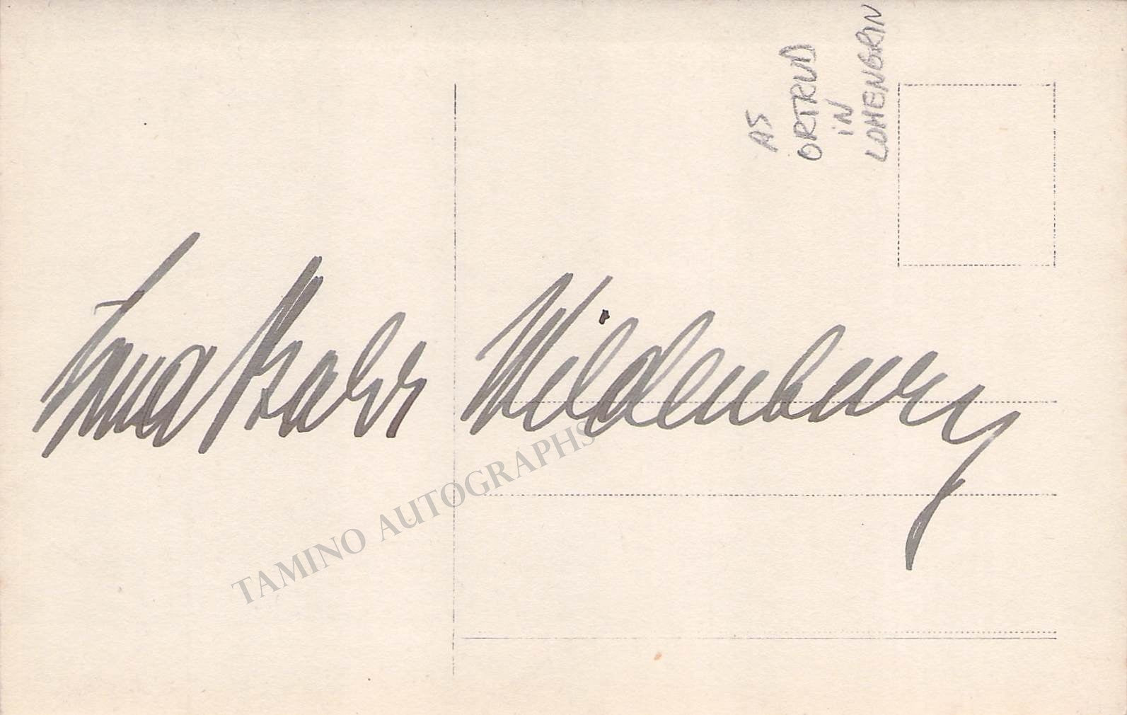 Austrian soprano (1872-1947), remarkable in her interpretations of Wagnerian roles, and heavily promoted by Gustav Mahler, who took her to the Vienna State Opera where she became a superstar singer. Also known by her birth name "Anna Von Mildenburg". Signed postcard photograph, shown as Ortrud in Wagner's Lohengrin, signature on verso. Size is 3.25 x 5.25 inches, in excellent condition.