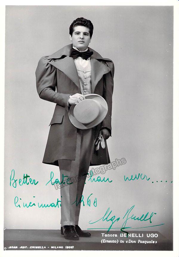 Italian tenor (b. 1935), signed photo, shown as Don Ernesto in Don Pasquale, dated in 1960, Cincinnati. Size is 4 x 6 inches, in excellent condition.