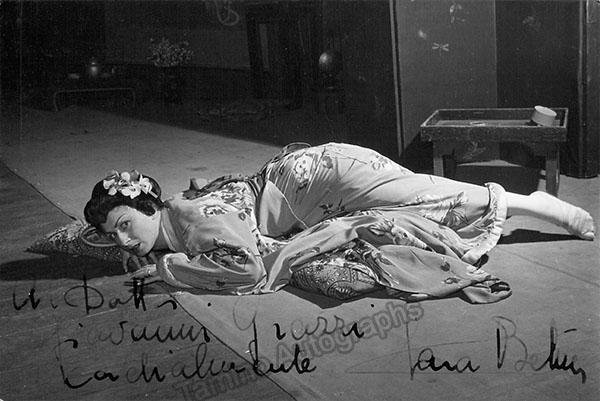 Italian mezzo-soprano (1922-2012), signed postcard photograph, shown as Suzuki in Puccini's Madama Butterfly, inscribed. Photo by Nova Foto photographers, Brescia. Size is 3.75 x 5.75 inches, in very good condition.