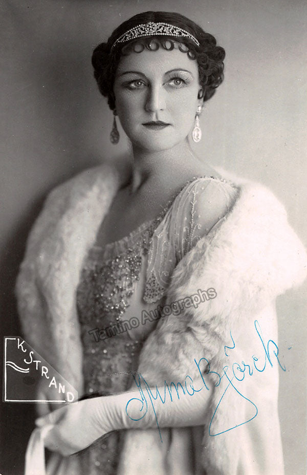 Swedish mezzo-soprano (1898-1993) who also sang dramatic soprano roles. Signed photograph, shown in the title role of Puccini's Tosca. Photograph by K Strand. Size is 3.75 x 5.75 inches, in excellent condition.