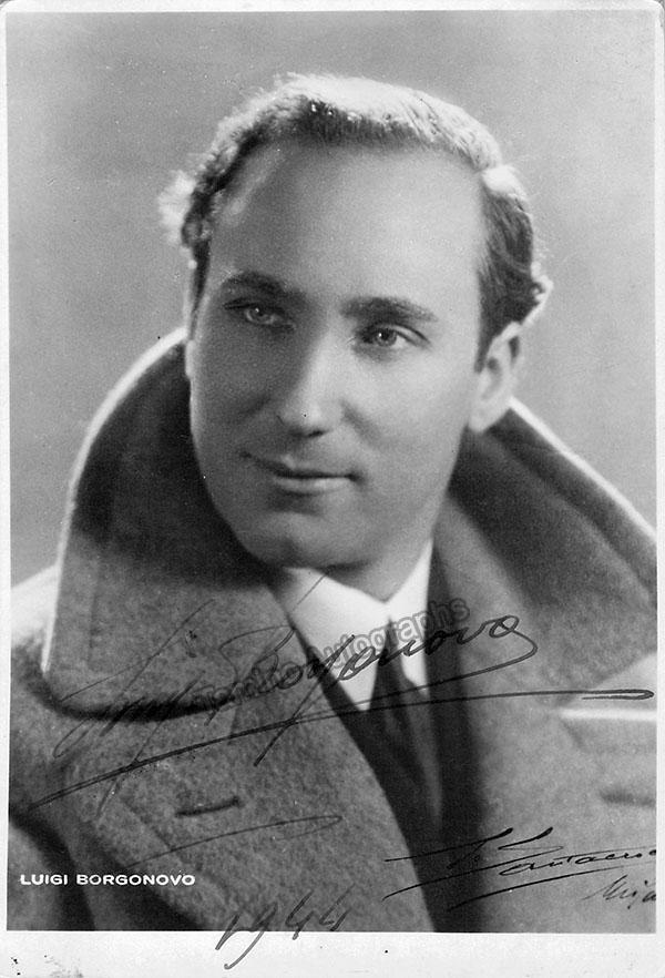 Signed postcard photograph, shown as himself. Blind stamped by photographer Ermini, Milan. Size is 3.5 x 5.5 inches, small creases on edges but otherwise in very good condition.