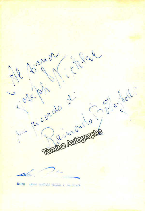 Italian tenor, signed photograph, shown as himself, signed and inscribed on verso. Stamped on verso by photographer De Rota, Trieste. Size is 4 x 5.75 inches, in excellent condition.