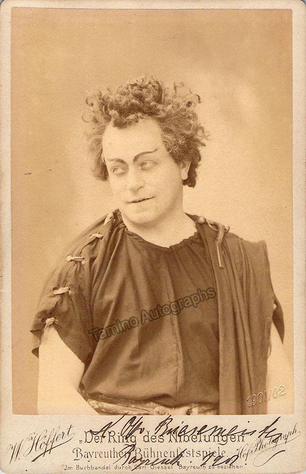 Attractive signed cabinet photograph, shown in role in Wagner's Ring Cycle at the Bayreuth Festival (possibly as Loge in Das Rheingold). Photo by W. Hoffert, Berlin. Size is 4.25 x 6.5 inches, in excellent condition.