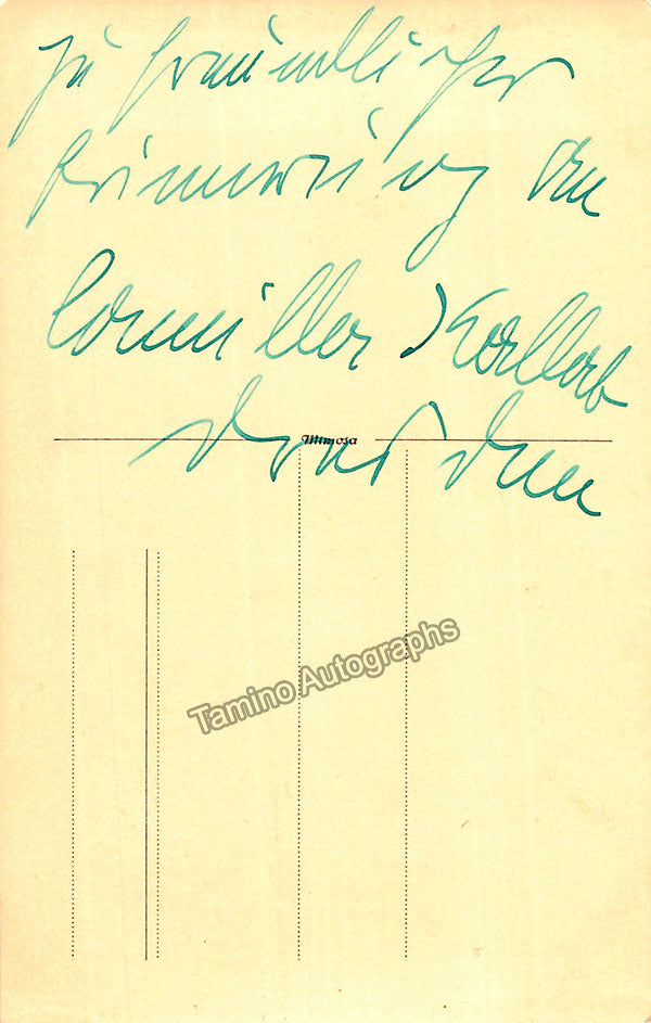 Nice black-and-white photo postcard signed by her on the verso with a short sentiment, shown as Carmen in Bizet's famous opera. Size is 3.4 x 5.4 inches, in excellent condition.