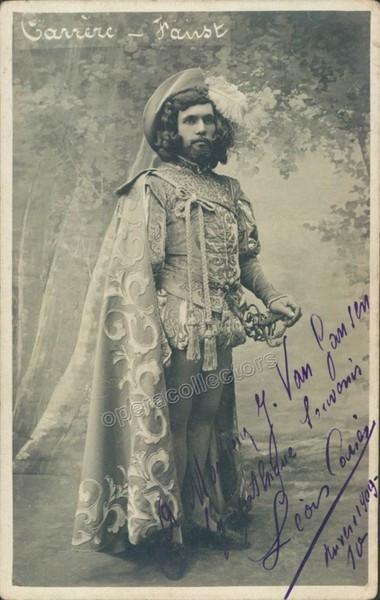 Signed photo postcard of the French tenor, shown as Faust, 3.5 x 5.5 inches, dated in Anvers in 1909, inscribed. In excellent condition