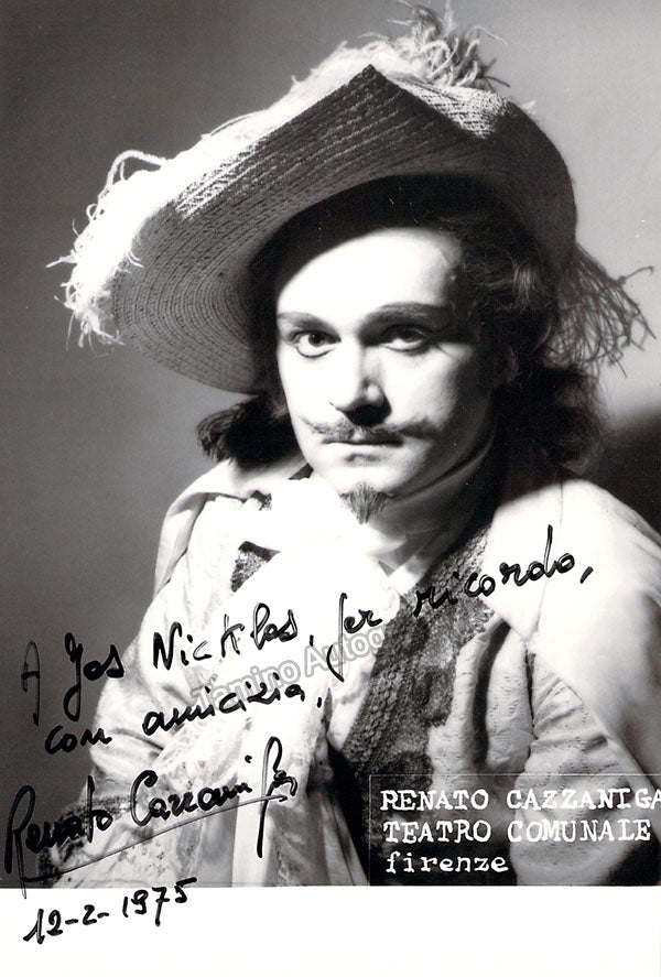 Italian tenor (b.1943), signed photograph, shown in role, inscribed and dated in 1975. Stamped on verso by photographer Marchiori, Florence. Size is 3.75 x 5.75 inches, in excellent condition