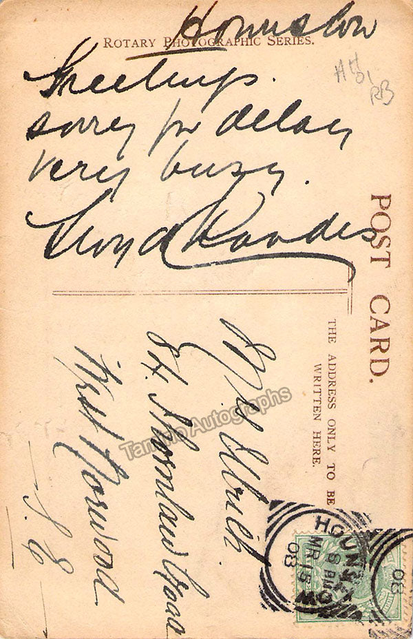 English tenor (1861-1939), signed photo postcard, shown as himself. Signed on front with additional signature and inscription on verso. Size is 3.5 x 5.25 inches. Some minor creases on corner, otherwise in very good condition.