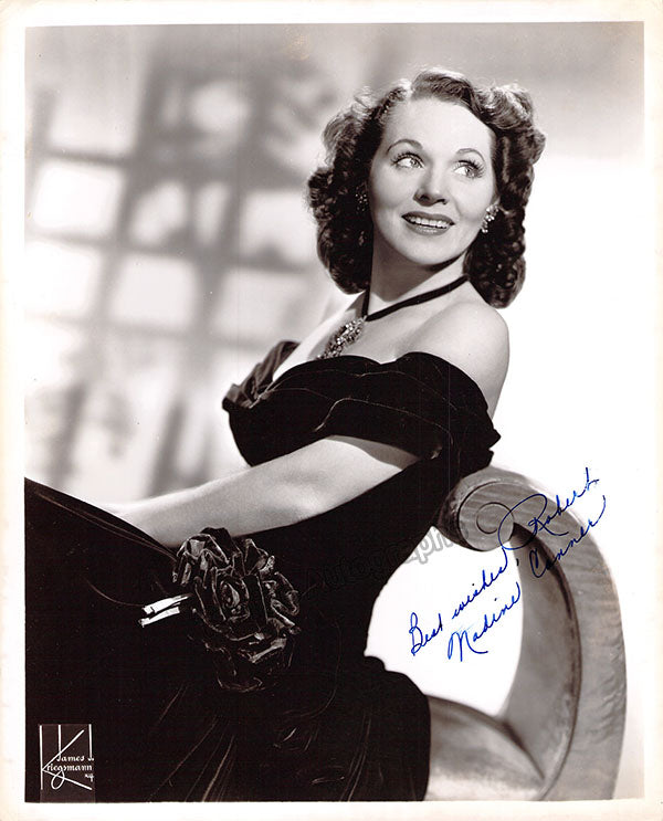 Signed photograph, shown as herself, inscribed. Printed signature on front of photographer James J, Kriegsmann, New York. Size is 8 x 10 inches, slight creasing and stains on verso, otherwise in excellent condition.