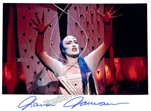 Signed photograph, shown as the Queen of the Knight in Mozart's Die Zauberflote. Size is 8 x 10.75 inches, in excellent condition.