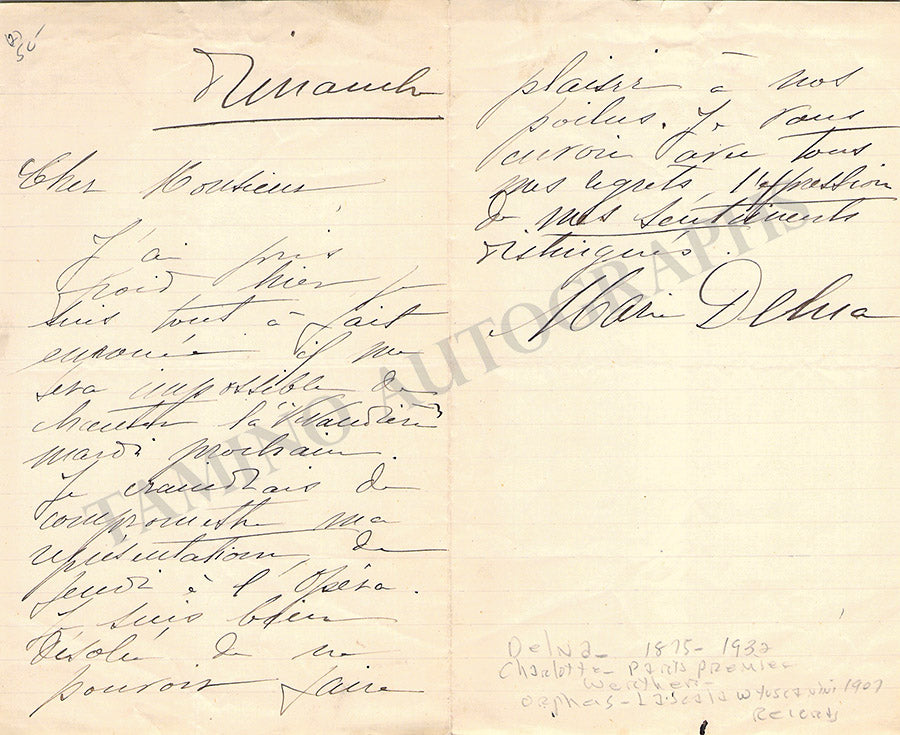 Delna, Marie - Set of 2 Autograph Letters Signed Delna, Marie - Set of 2 Autograph Letters Signed
