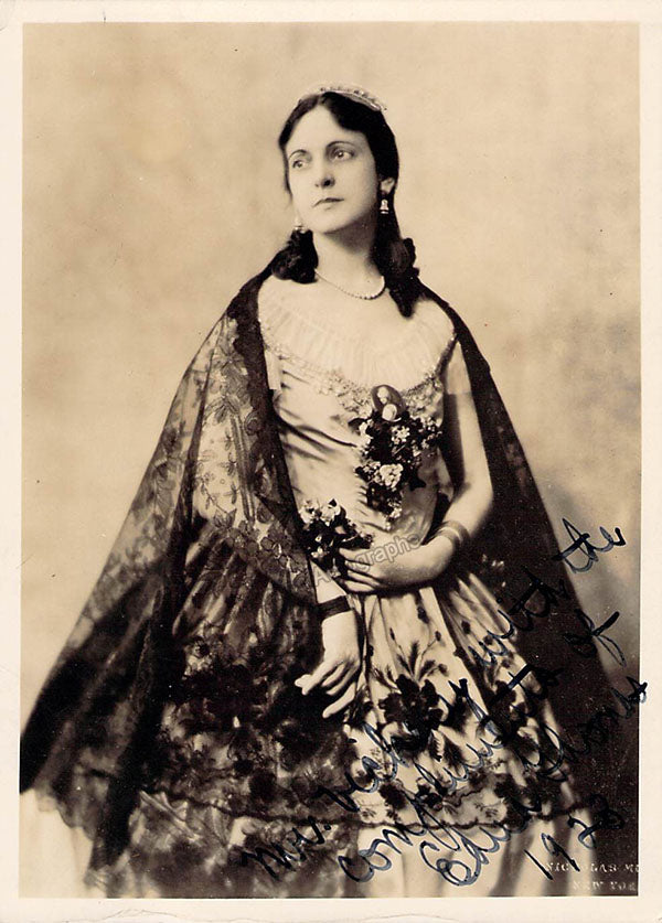 Black-and-white photograph signed and inscribed by her with a short sentiment in 1923. Size is 5 x 6.8 inches, in excellent condition.