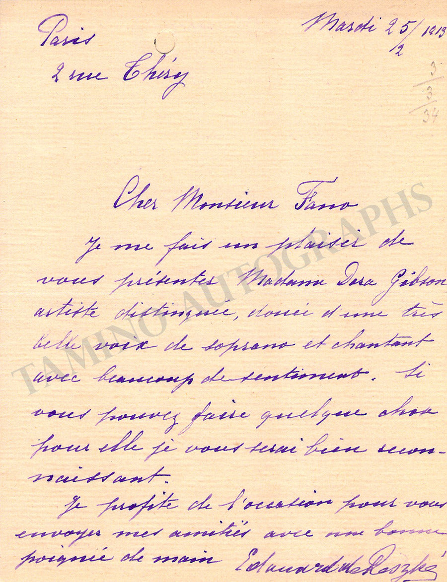 De Reszke, Edouard - Autograph Manuscritps (Various Options)