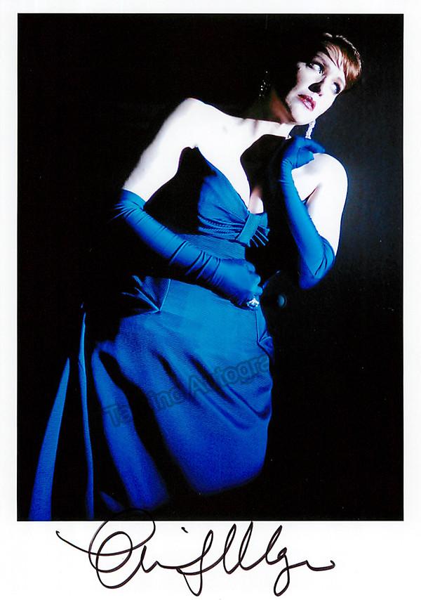 Beautiful color photograph signed by her, shown in performance. Size 7 x 10 inches, in excellent condition.