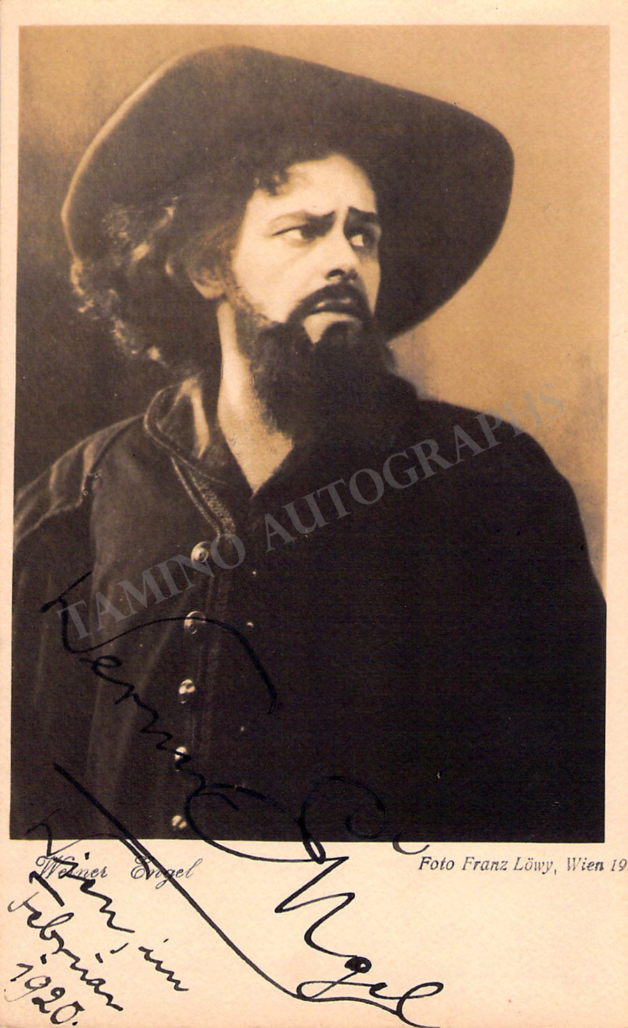 German baritone (1884-?), signed postcard photograph, shown in role, dated in Vienna in 1920. Photo by Franz Lowy, Vienna. Size is 3.25 x 5.25 inches, in excellent condition.
