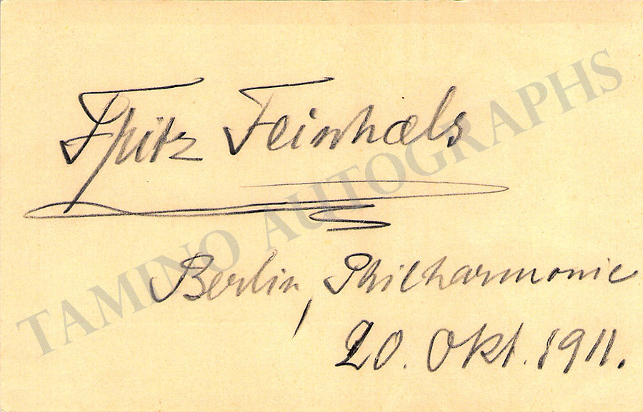 German baritone (1869-1940), signed card, dated at the Berlin Philharmonic in 1911. Size is 3.5 x 5.5 inches, in excellent condition.