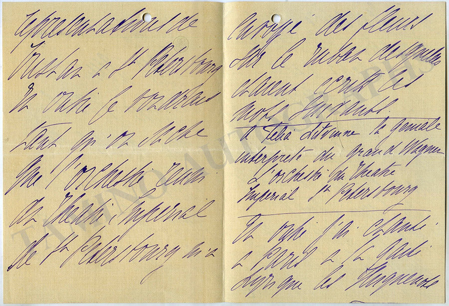 B. To a friend: “…comme vous seriez gentil de faire un petit echo voici le Figaro qui parle de mes representation de Tristan à St. Petersbourg…”. 4 pp. In-8 With letterhead.