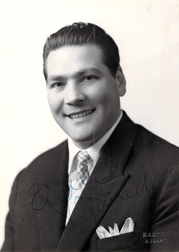 Signed photograph, shown as Cavaradossi in Puccini's Tosca, inscribed. Printed signature on front of photographer Louis Melancon, Metropolitan Opera, New York. Size is 8 x 10 inches, in excellent condition.
