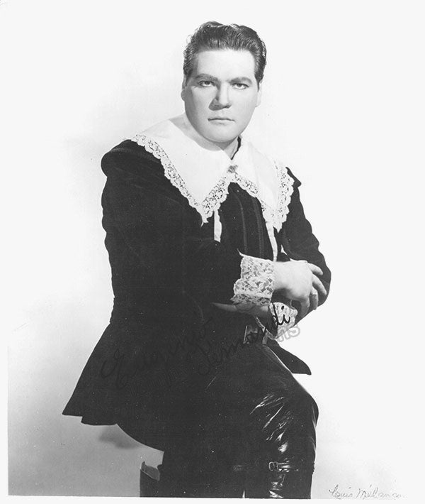 Signed photograph, shown in role. Printed signature on front of photographer Louis Melancon, Metropolitan Opera, New York. Size is 8 x 9.25 inches, several small creases, otherwise in very good condition