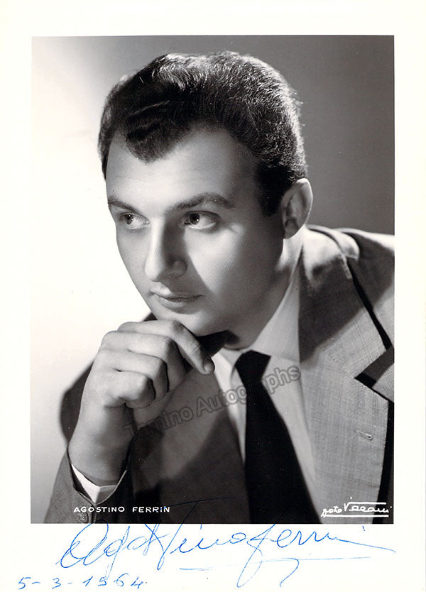 Signed Photograph, shown as Fiesco in Verdi's Simon Bocanegra at La Scala, Milan. Inscribed and dated in 1970. Photo by E. Piccagliani, Milan. Size is 4.1 x 5.75 inches, in excellent condition.