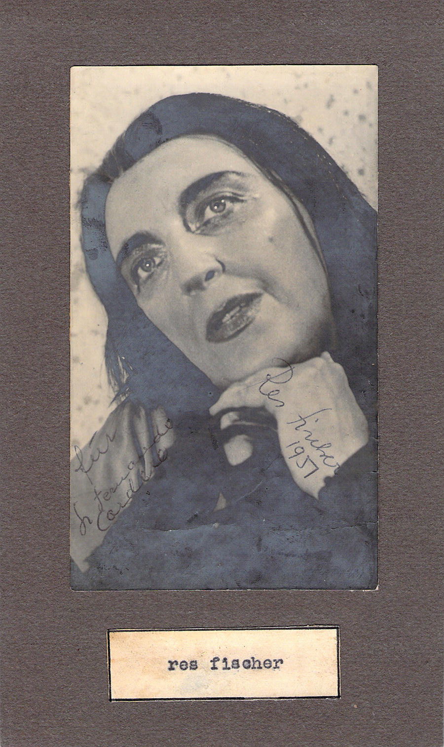 German contralto (1896-1974), matted signed photo, shown in role, dated in 1957. Size of photo is 2.75 x 4.75 inches, matted onto soft cardboard, total item size is 4.25 x 7 inches, in excellent condition.