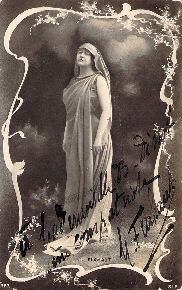 Belgian mezzo-soprano (1876 -?), signed postcard photograph, shown in role, inscribed. Printed signature on front of photographer Reutzlinger, Paris. Size is3.5 x 5.5 inches, in excellent condition.