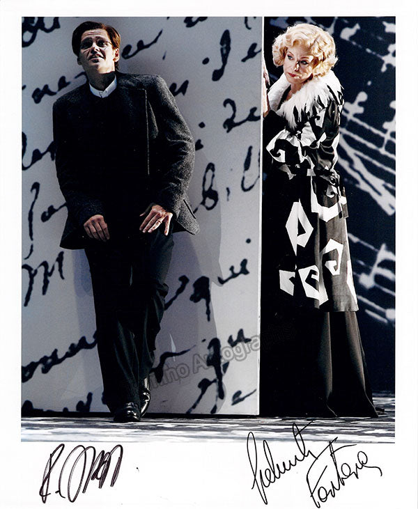 Austrian soprano (b. 1957) and German tenor (b. 1966), double signed photograph, shown in roles in Richard Strauss's Capriccio. Size is 8 x 9.75 inches, in excellent condition.