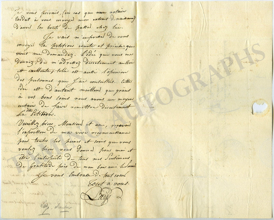 Lays, Francois - Autograph Letter Signed 1830 Lays, Francois - Autograph Letter Signed 1830