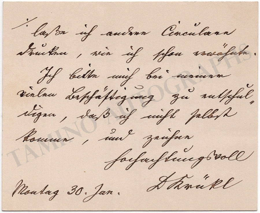 Krukl, Franz - Autograph Note Signed on Card Krukl, Franz - Autograph Note Signed on Card