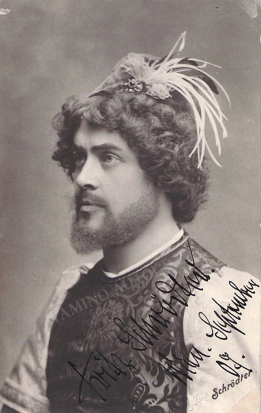 Beautiful black-and-white photo postcard signed by him, shown in role, dated in Vienna, 1907.  Size is 3.3 x 5.3 inches, in very good condition.