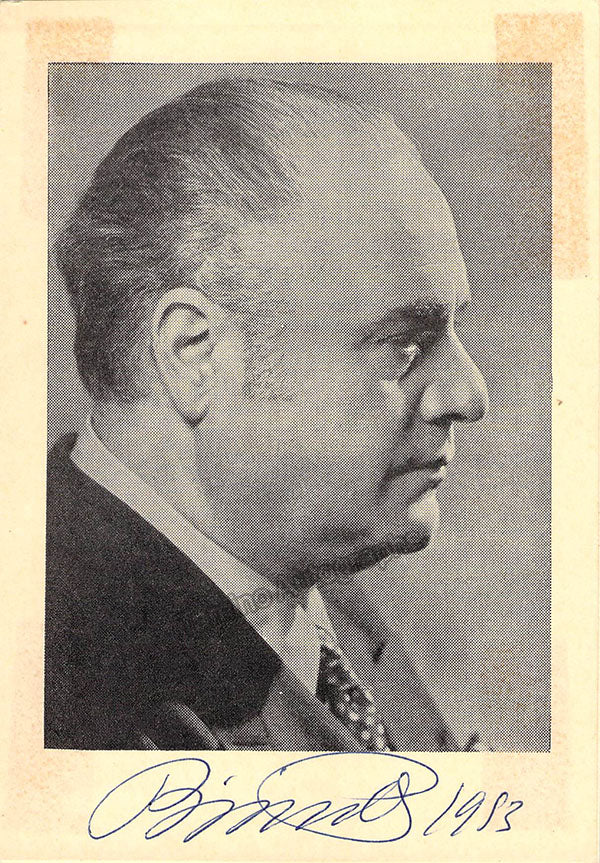 Beautiful black-and-white photograph signed and inscribed by him with a short sentiment dated 1947; ink-stamped on verso by Schönfeld (Buenos Aires), very soft silvering over the bottom of the photo, otherwise in excellent condition.