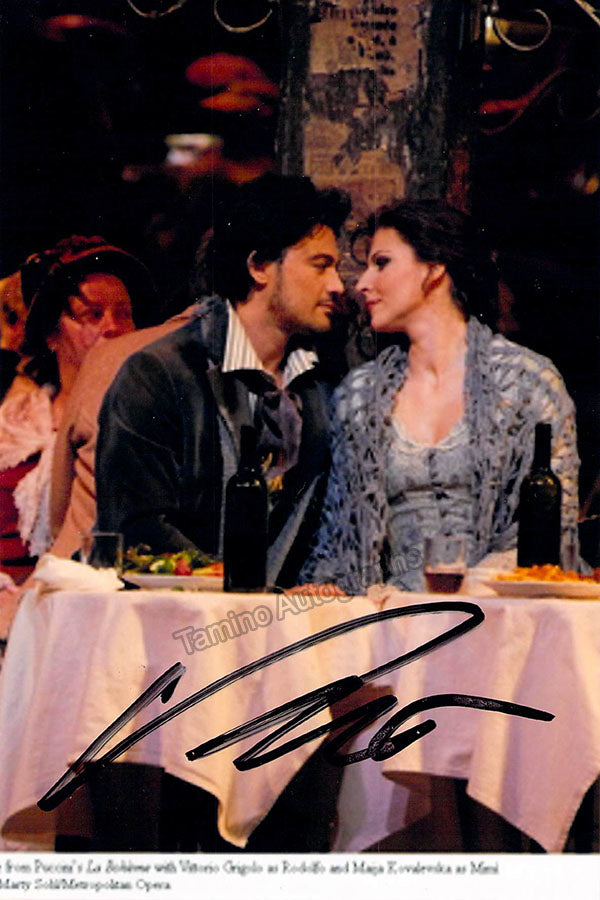 Italian tenor (b. 1977), one of today's most popular opera singers. Signed photograph, shown as Rodolfo in Puccini's La Boheme at New York's Metropolitan Opera with soprano Maja Kowalevska as Mimi. Size is 4 x 6 inches, beautiful photo in excellent condition.