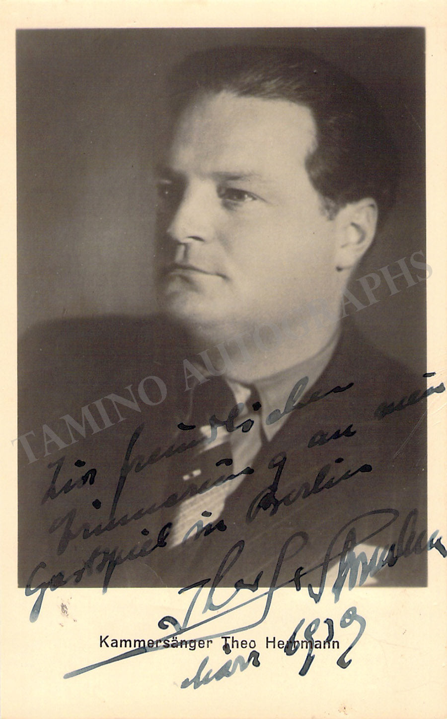 German bass (1902-1977), signed postcard photograph, shown as himself, dated in 1929, inscribed. Photo by A. Herkner, Stuttgart. Size is 3.25 x 5.25 inches, in excellent condition.