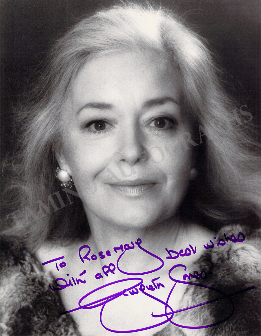 Fine black-and-white photograph signed and inscribed by her with a short sentiment, shown as herself. Size is 7.1 x 9.25 inches, in excellent condition.