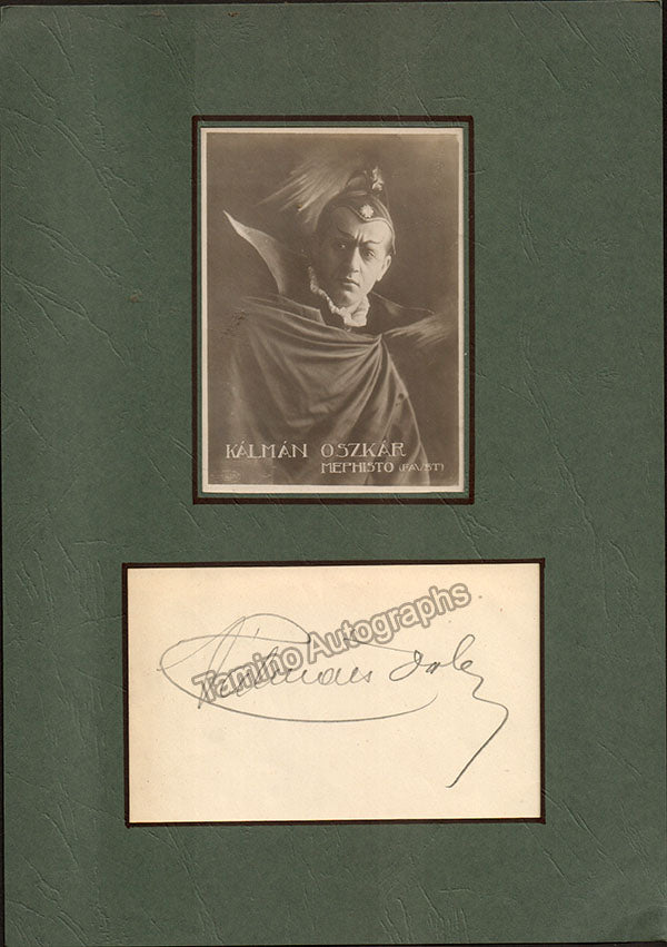 Hungarian bass (1887-1971), signature cut and separate photograph, shown as Mephistopheles in Gounod's Faust, both mounted on soft cardboard. Total item size is 8.25 x 11.75 inches, small creases on edges and mounting tape traces on verso, otherwise in excellent condition.