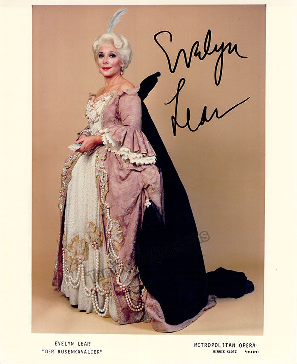 Signed photograph, shown as the Marschallin in Richard Strauss's Der Rosenkavalier. Photo by Winnie Klotz, Metropolitan Opera, New York. Size is 8 x 10 inches, in excellent condition.