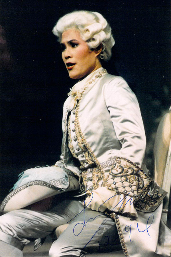 Chinese mezzo-soprano (b. 1955), signed photograph, shown in role (possibly Octavian in Richard Strauss's Der Rosenkavalier, dated in 1994. Size is 4 x 6 inches, in excellent condition.