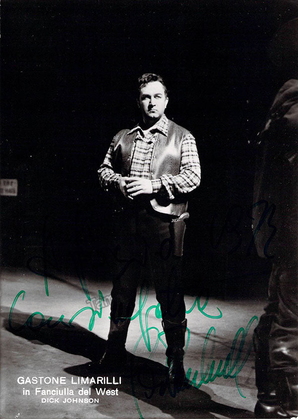 Signed photograph, shown as Dick Johnson in Puccini's La Fanciulla del West, inscribed. Size is 5 x 6.75 inches, in very good condition.