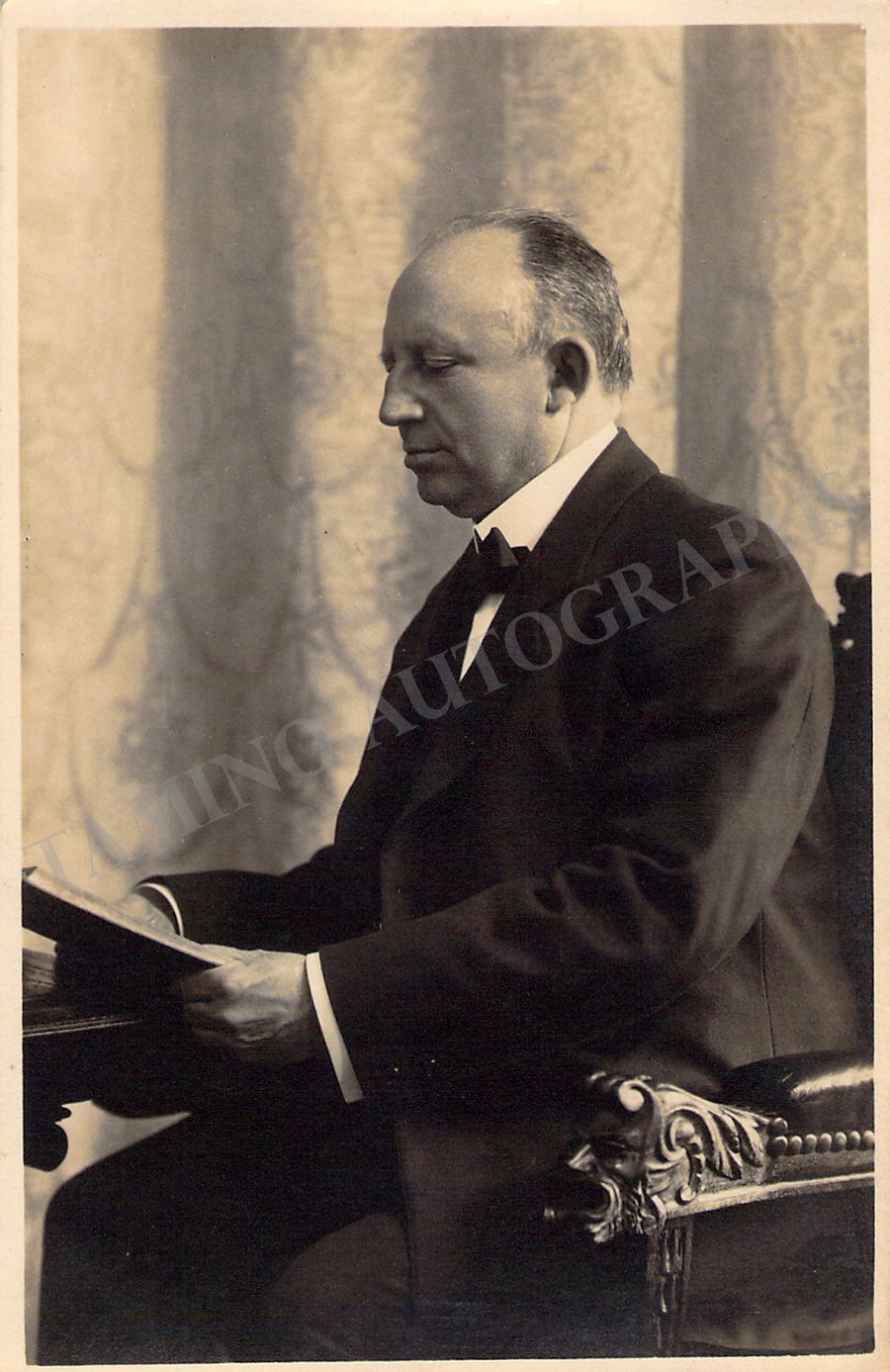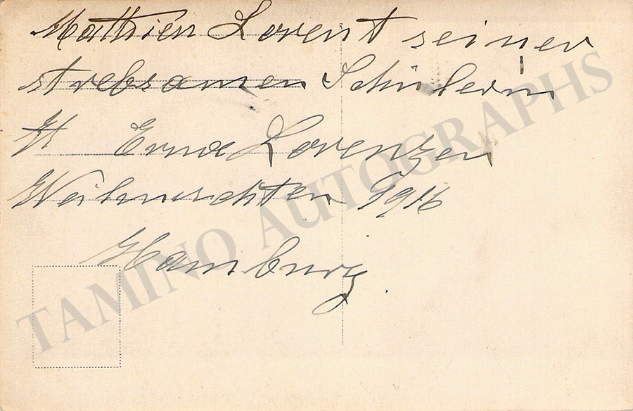 German baritone (1857-1923), who worked closely with Gustav Mahler. Signed postcard photograph, shown reading a musical score, signature on verso, dated in 1916. Size is 3.5 x 5.25 inches, in excellent condition.