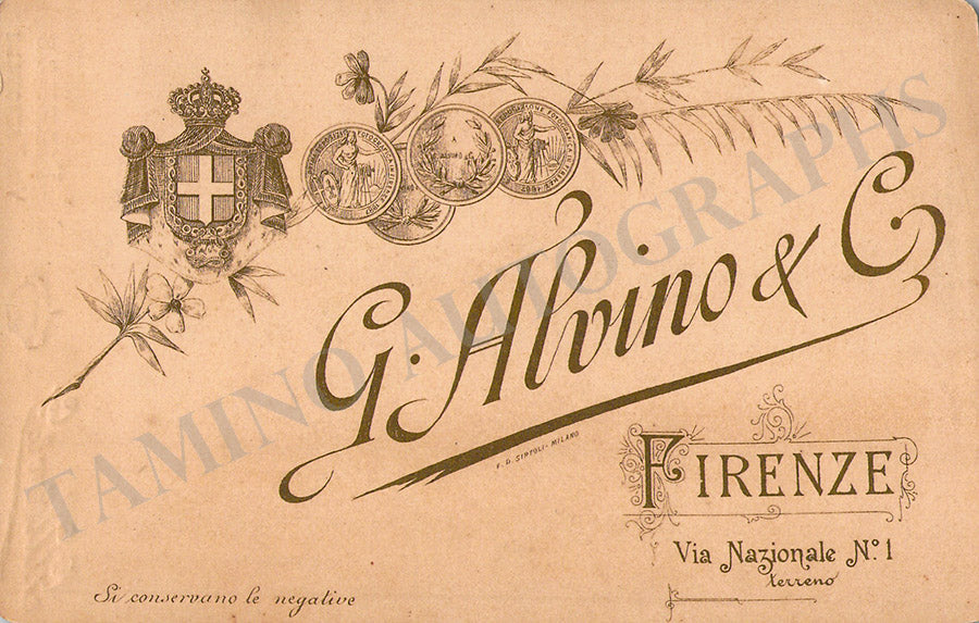 Fine cabinet photograph by photographer G. Albino (Florence) signed and inscribed by Bruschini with a short sentiment dated in Milan, June 5, 1900. Size is 4.1 x 6.4 inches, in excellent condition.