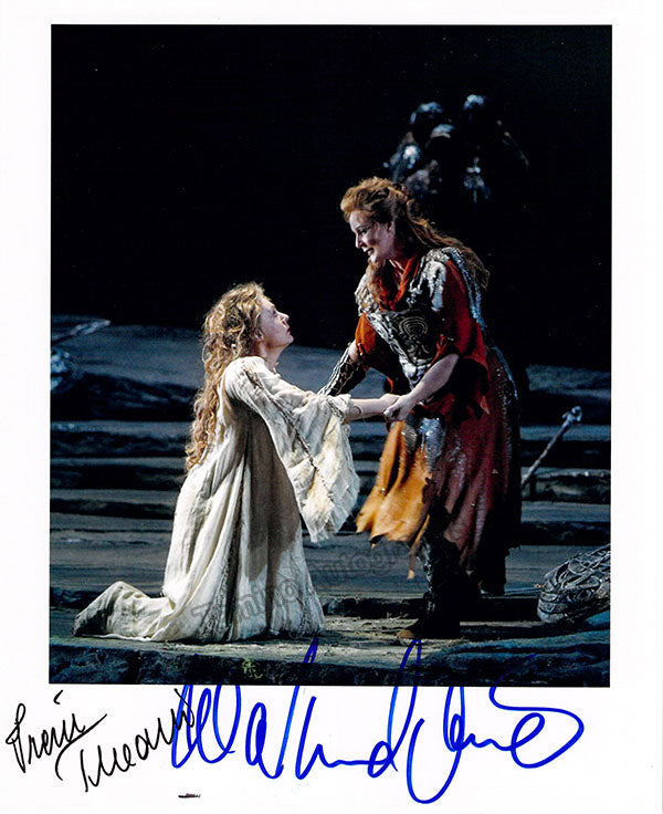 German mezzo-soprano (b. 1956) and Swedish soprano (b. 1963), double signed photograph shown as Sieglinde and Brunnilde respectively, in Wagner's Die Walkure at the Metropolitan Opera in 2009. Size is 8 x 9.75 inches, in excellent condition.