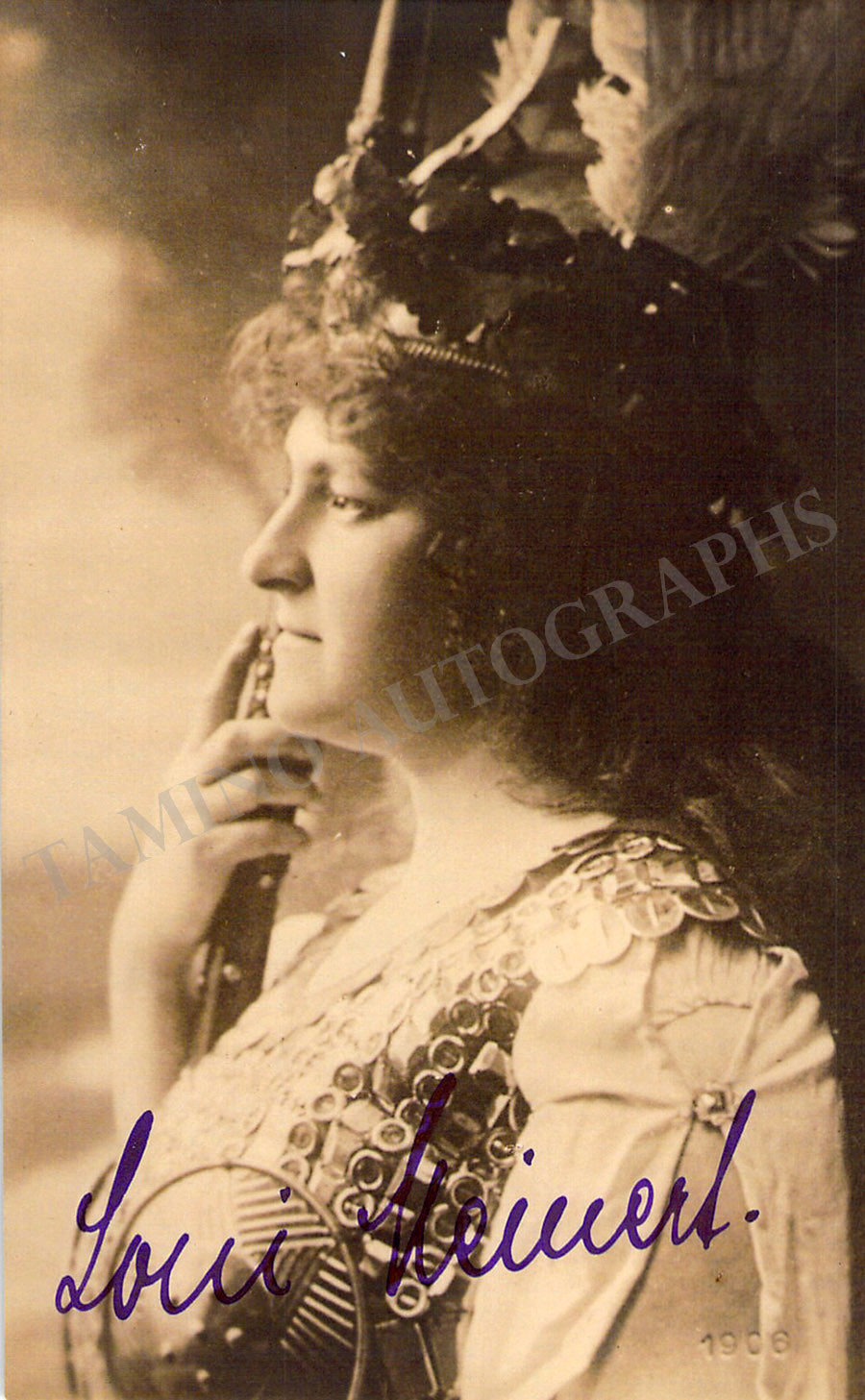 German soprano, particularly associated with the Mainz Opera. Signed postcard photograph, shown as Brunnhilde in Wagner's Die Walkure. Size is 3.25 x 5.25 inches, beautiful vintage photo in excellent condition.