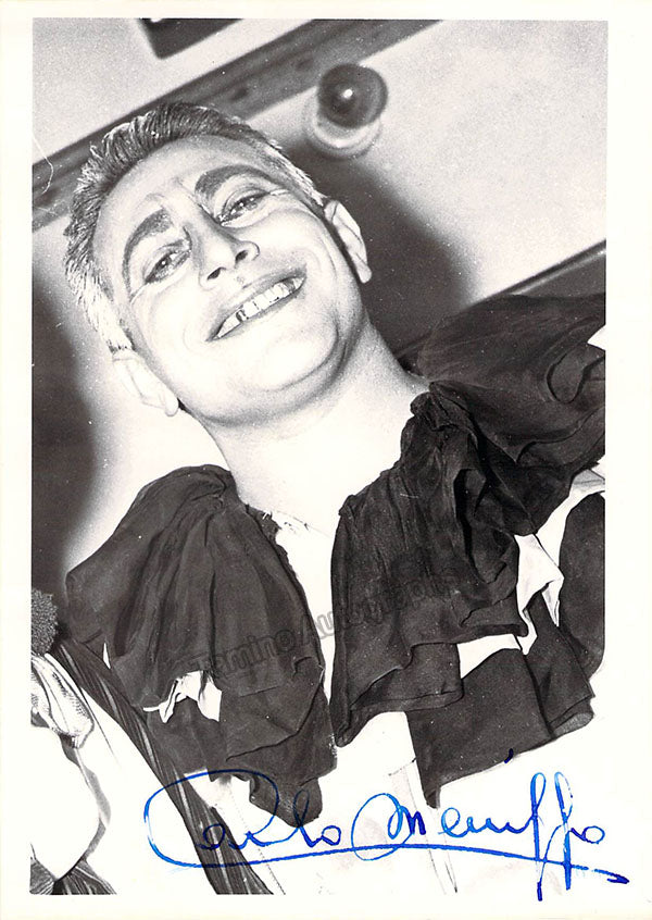 Italian tenor (1930-2003), signed photograph (possibly Canio in Leoncavallo's I Pagliacci). Stamped on verso by B. Cremona photo studio, Piacenza. Size is 4 x 5.75 inches, some bends, otherwise in very good condition.