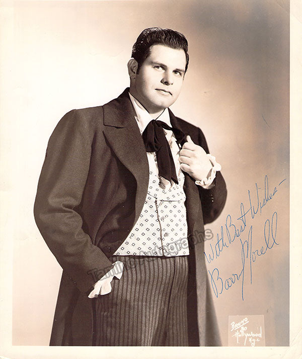 Signed photograph, shown as Rodolfo in Puccini's La Boheme. Stamped on verso by photo studio Bruno of Hollywood and New York City. Size is 8 x 9.75 inches, small crease on bottom right, otherwise in very good condition.