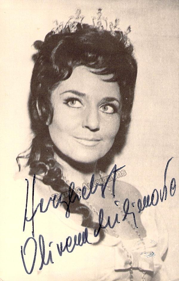 Fine black-and-white photograph signed by her, shown as Romilda in Handel's Xerxes. Size is 3.5 x 5.5 inches, in excellent condition.